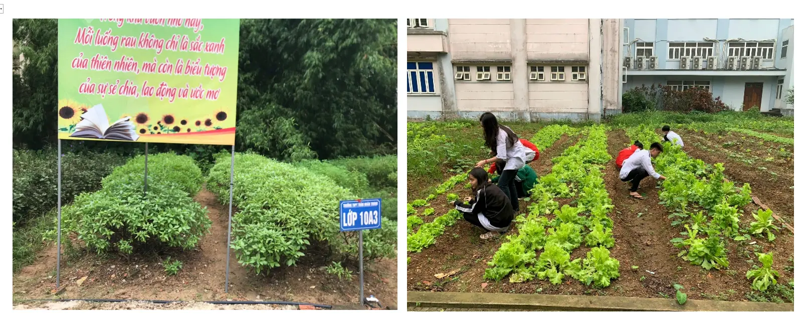 Từ những khu đất vốn khô cằn, lẫn nhiều sỏi đá, ít được sử dụng, dưới bàn tay chăm sóc tận tâm của thầy cô giáo và sự tham gia tích cực của học sinh, các khu đất ấy đã từng bước được cải tạo, “hồi sinh” thành những vườn rau xanh tốt và vườn cây dược liệu phát triển bền vững. Quá trình ấy không chỉ đòi hỏi công sức lao động mà còn thể hiện tinh thần đoàn kết, kiên trì và trách nhiệm của tập thể sư phạm và học sinh toàn trường.