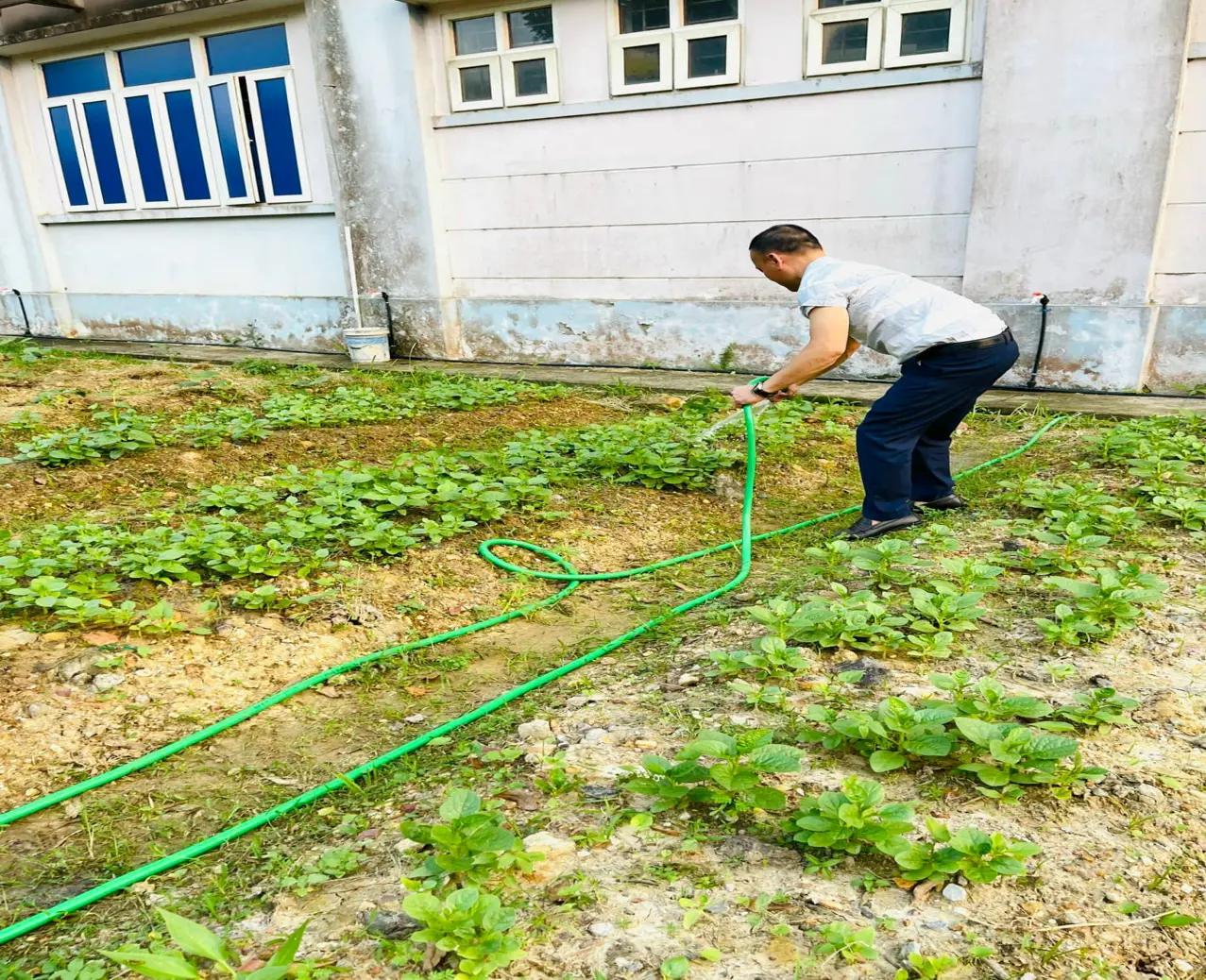 Thầy cô nhà trường Tham gia chăm sóc vườn rau, vườn cây dược liệu
