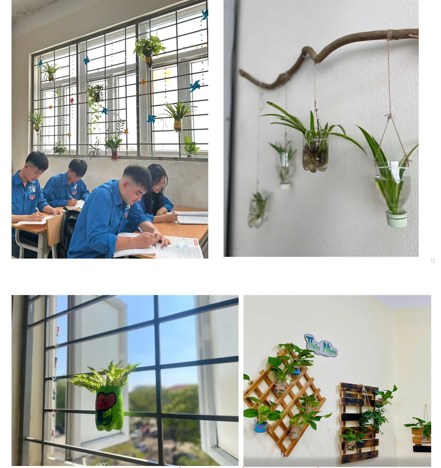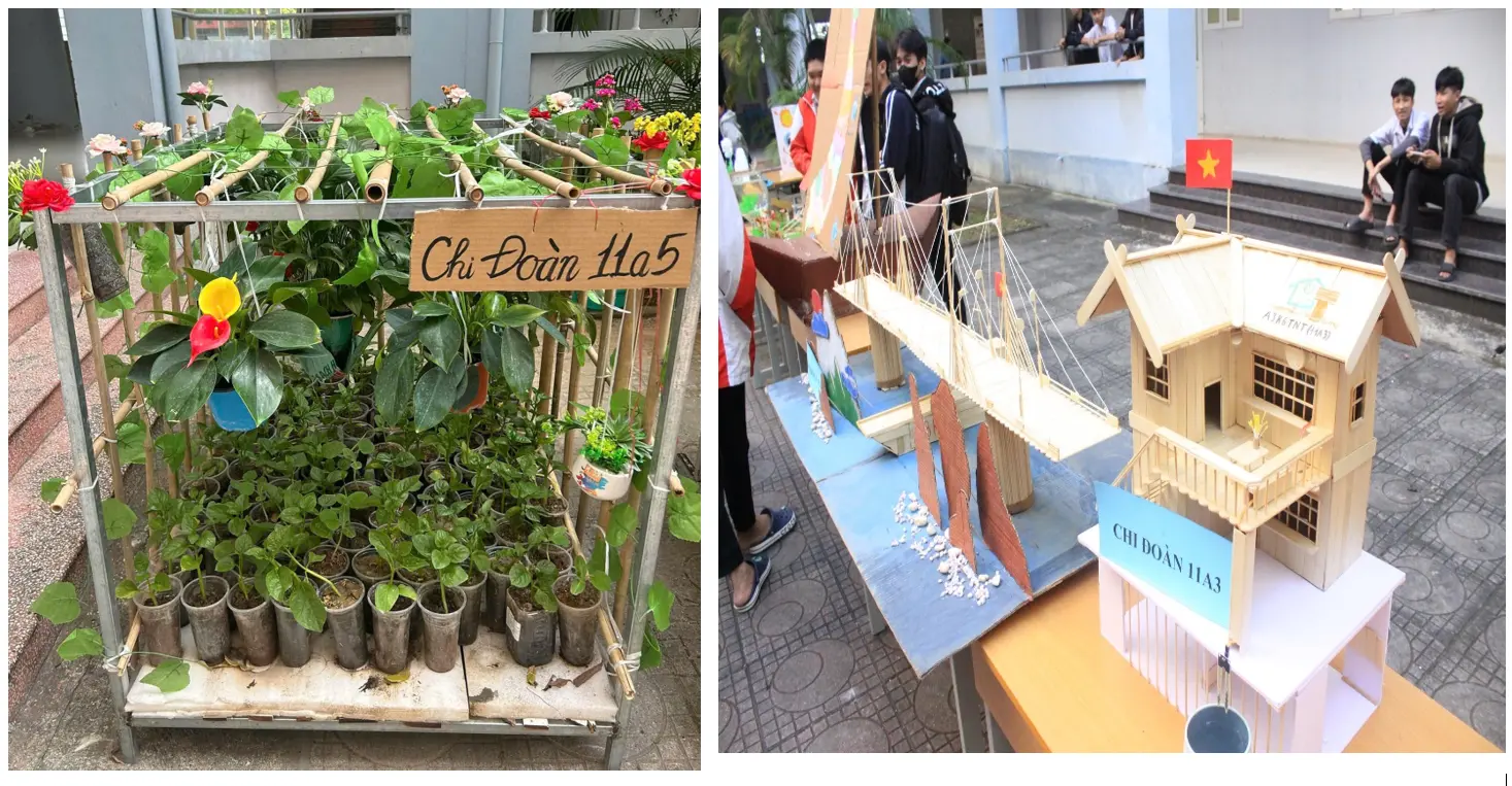 Từ những vật liệu tưởng chừng bỏ đi như chai nhựa, lon nhôm, bìa carton, giấy báo cũ, hộp giấy, ống hút, dưới bàn tay khéo léo và óc sáng tạo của học sinh, nhiều sản phẩm học tập và trang trí ý nghĩa đã ra đời. Các lớp đã tận dụng chai nhựa, lon sữa, hộp nhựa để làm chậu trồng cây xanh, trang trí góc học tập và hành lang lớp học, góp phần tạo nên không gian học tập xanh – sạch – đẹp, gần gũi với thiên nhiên.