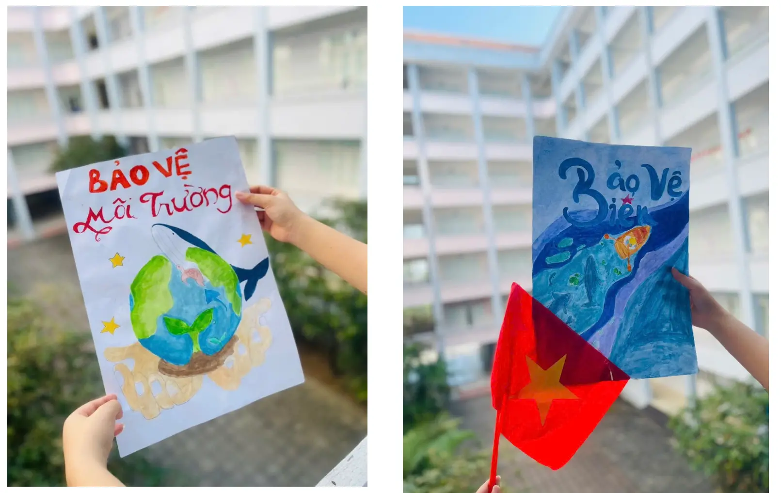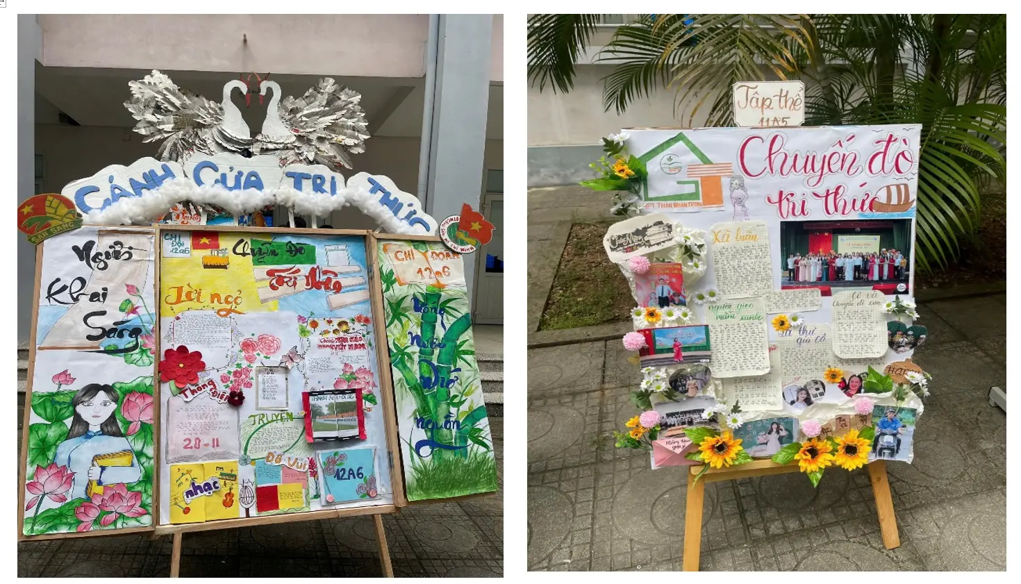 Bên cạnh đó, hoạt động làm báo tường từ vật liệu tái chế đã mang đến màu sắc mới cho các phong trào thi đua trong nhà trường. Những tờ báo tường được thiết kế trên nền bìa carton, giấy tái chế, trang trí bằng hoa giấy, lá khô, nắp chai… không chỉ đẹp mắt mà còn thể hiện nội dung phong phú về chủ đề bảo vệ môi trường, sống xanh, trường học xanh. Thông qua hoạt động này, học sinh vừa phát huy năng khiếu viết, vẽ, trình bày, vừa nâng cao nhận thức về việc tái sử dụng rác thải và bảo vệ môi trường sống.
